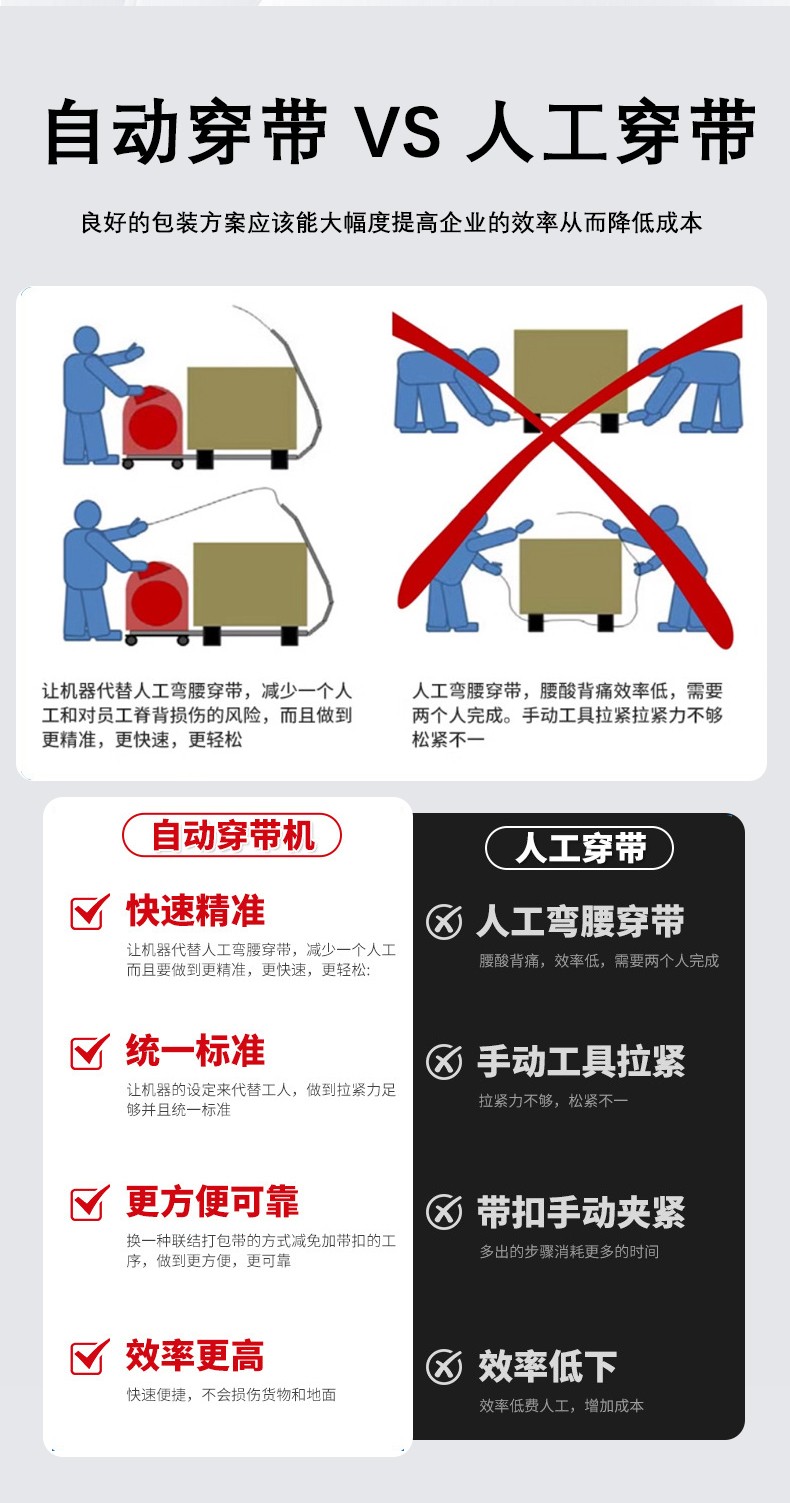 - 帶倉容量不足:如果帶倉容量過小,在連續(xù)作業(yè)時(shí),需要頻繁更換打包帶卷,不僅影響工作效率,還可能在更換過程中導(dǎo)致打包帶安裝不規(guī)范,進(jìn)而引發(fā)卡帶或送帶不暢。可根據(jù)實(shí)際工作需求,選擇合適帶倉容量的穿帶機(jī),或者對現(xiàn)有的帶倉進(jìn)行改造,增加其容量。