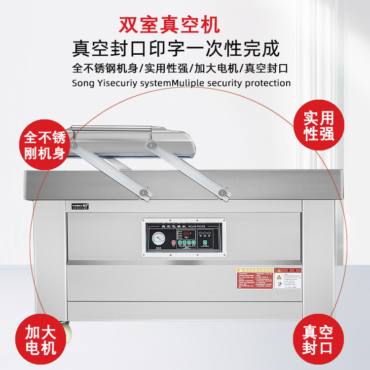 • 真空室尺寸:根據待包裝物品的大小和包裝數量,選擇合適真空室尺寸的雙室平板真空包裝機,確保物品能夠順利放入真空室進行包裝。