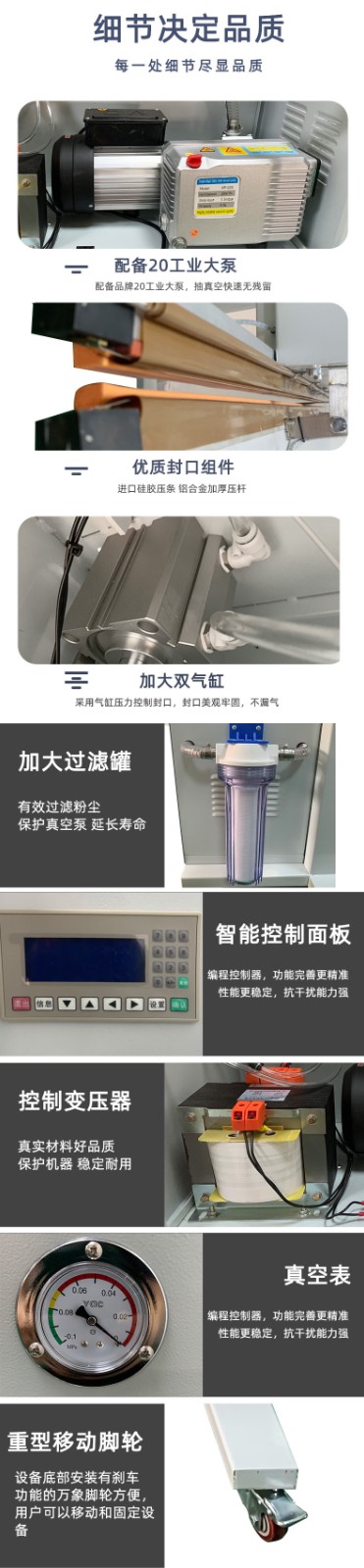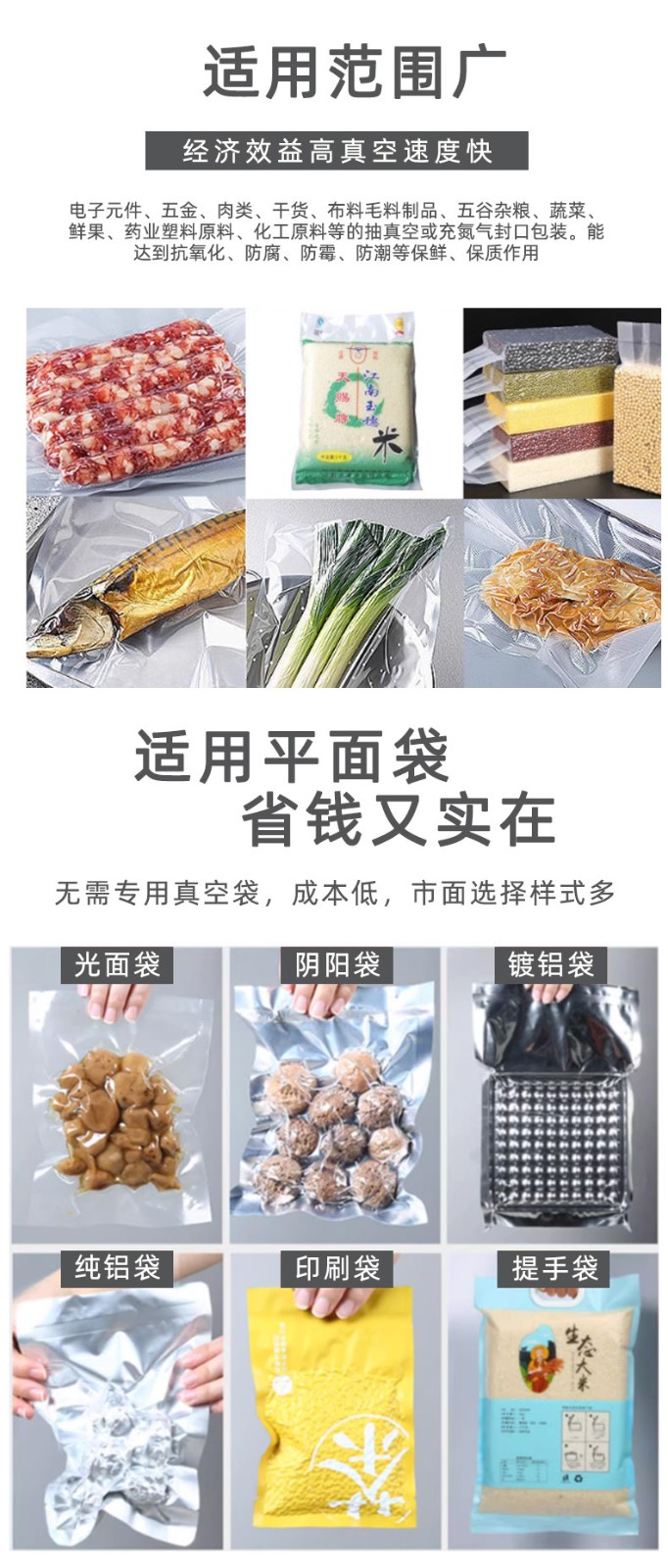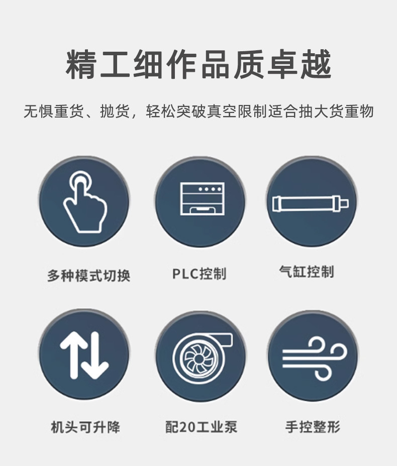 - 包裝質(zhì)量高:能夠精確控制真空度和封口質(zhì)量,保證產(chǎn)品在真空包裝后能夠有效防止氧化、受潮和變質(zhì)。例如,在包裝高檔茶葉、電子產(chǎn)品等對(duì)包裝環(huán)境要求較高的產(chǎn)品時(shí),它可以提供良好的包裝效果,延長(zhǎng)產(chǎn)品的保質(zhì)期和使用壽命。
