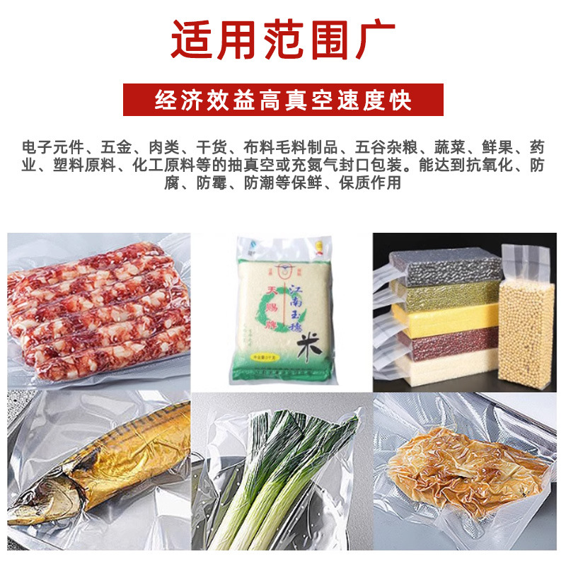 - 食品行業(yè):用于包裝各種食品,如肉類(lèi)、海鮮、干貨、休閑食品等。例如,在肉類(lèi)加工廠(chǎng),可以用它來(lái)真空包裝新鮮的肉塊,延長(zhǎng)保質(zhì)期;在干貨生產(chǎn)廠(chǎng),包裝木耳、香菇等干貨,防止受潮和蟲(chóng)害。