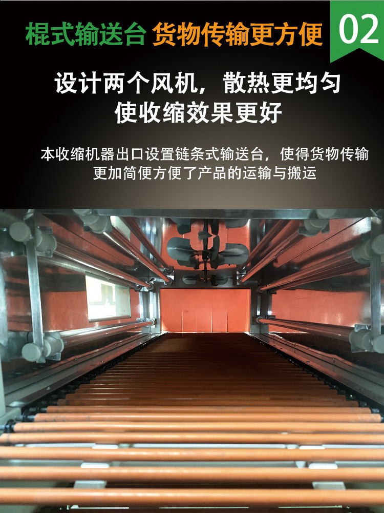 • 溫度控制系統的精度很重要,一般能夠精確控制在 ±5℃左右,這確保了薄膜在合適的溫度范圍內收縮,避免因溫度過高導致薄膜損壞或者溫度過低而收縮不完全的情況。