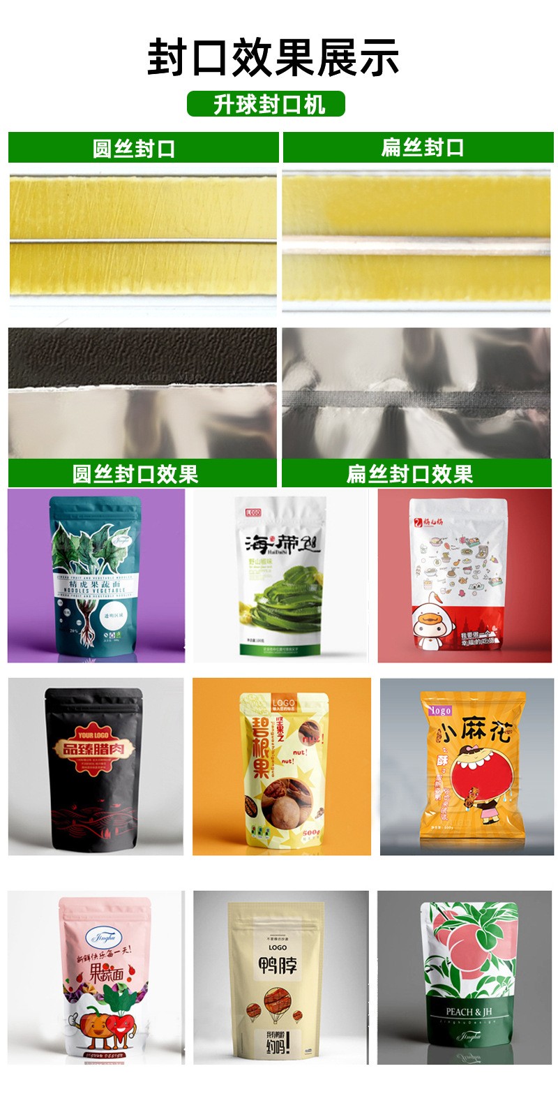 - 腳踏封口機可以對各種各樣材質的包裝袋進行封口哦。無論是常見的塑料薄膜袋,還是一些復合袋,甚至是部分紙質包裝袋(只要其材質能夠在加熱軟化后通過擠壓實現封口),腳踏封口機都能較好地完成任務。它在很多行業都有廣泛的應用,比如在食品行業,可以對零食包裝袋、醬料包裝袋等進行封口;在日化行業,可以對洗發水、沐浴露等產品的試用裝、小包裝進行封口;在文具行業,可以對文具袋、便簽本包裝等進行收口;在小五金行業,可以對一些小五金零件的包裝袋進行封口等。