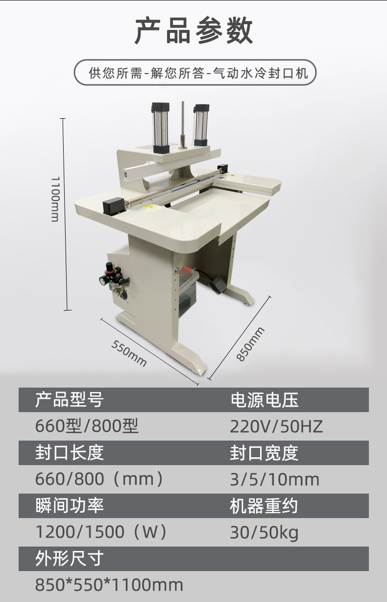 - 與非水冷式封口機相比,水冷封口機的封口更加平整、美觀。冷卻過程使得封口處的材料均勻收縮,減少了封口起皺或變形的情況,提升了產(chǎn)品包裝的整體外觀質(zhì)量。