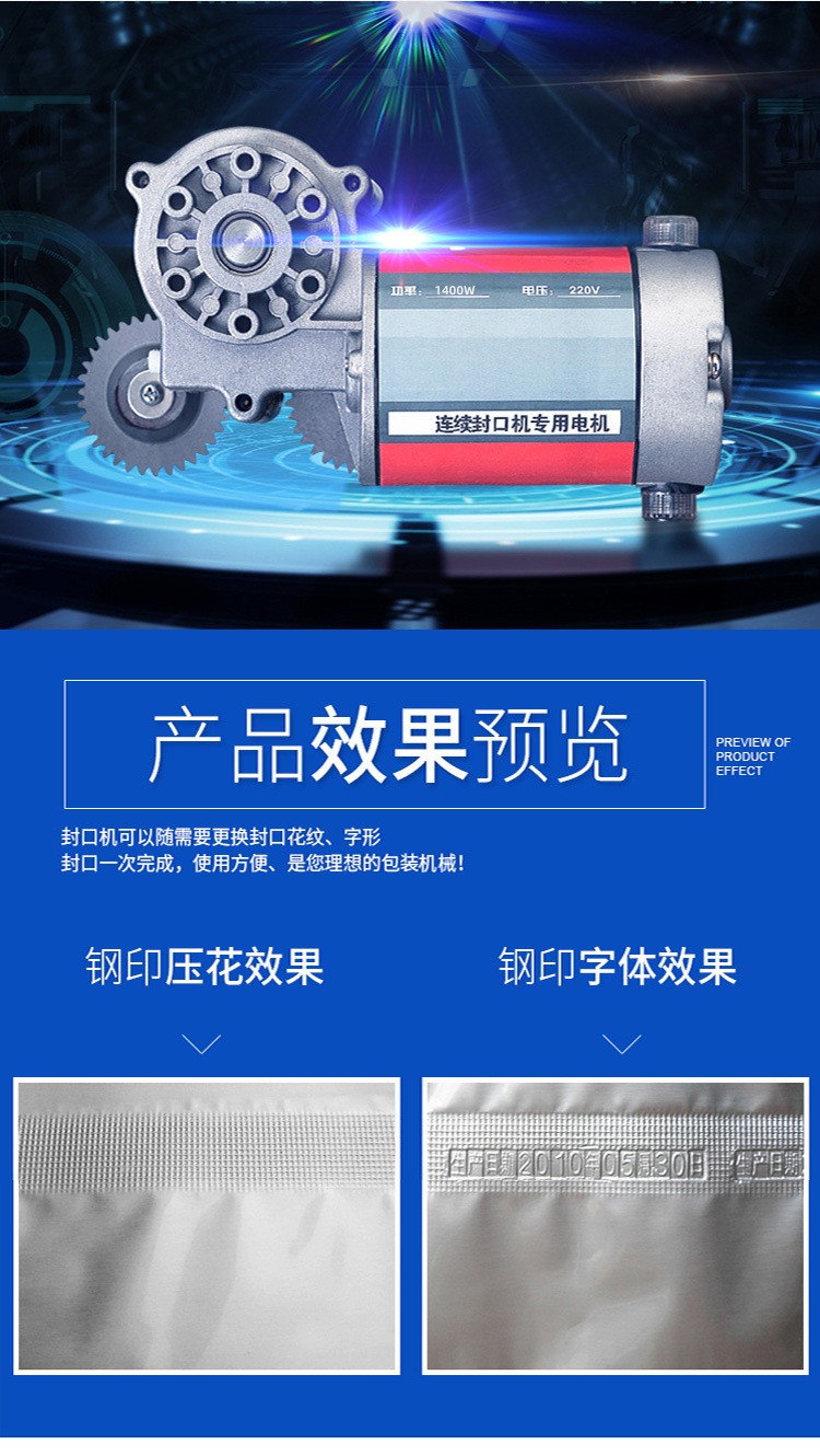 - 良好的兼容性:能夠兼容多種包裝形式和尺寸,包括扁平袋、立體袋、異形袋等,以及不同材質(zhì)和厚度的包裝薄膜。通過更換不同的封口模具或調(diào)整設(shè)備參數(shù),即可實(shí)現(xiàn)對(duì)各種包裝的封口作業(yè),具有很強(qiáng)的通用性和靈活性12.