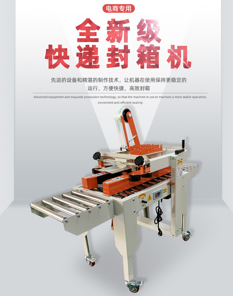 它主要是通過機械傳動裝置,帶動膠帶輸送和粘貼機構來工作。當紙箱通過輸送帶被輸送到封箱機的工作區(qū)域時,機器內(nèi)部的滾輪或者皮帶會夾緊紙箱,使其保持穩(wěn)定的位置。然后,封箱機的膠帶切割和粘貼裝置會將膠帶從膠帶卷上拉出,按照預先設定的路徑,先粘貼紙箱的一側,然后通過機器的折疊裝置將膠帶繞過紙箱的頂端或底部邊緣,最后粘貼在紙箱的另一側,從而完成封箱動作。