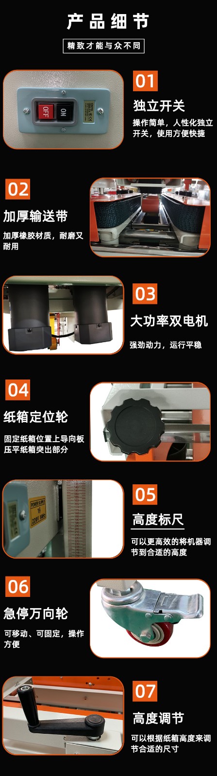 - 包括主動輪、從動輪和輸送帶。主動輪通過電機驅動,帶動輸送帶運轉,將紙箱輸送到封箱位置。輸送帶的材質一般是橡膠或者 PVC 等具有一定摩擦力的材料,這樣可以有效地防止紙箱在輸送過程中滑動。