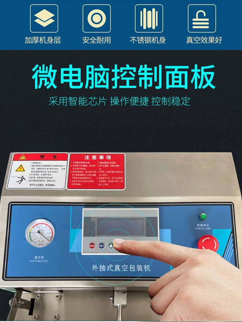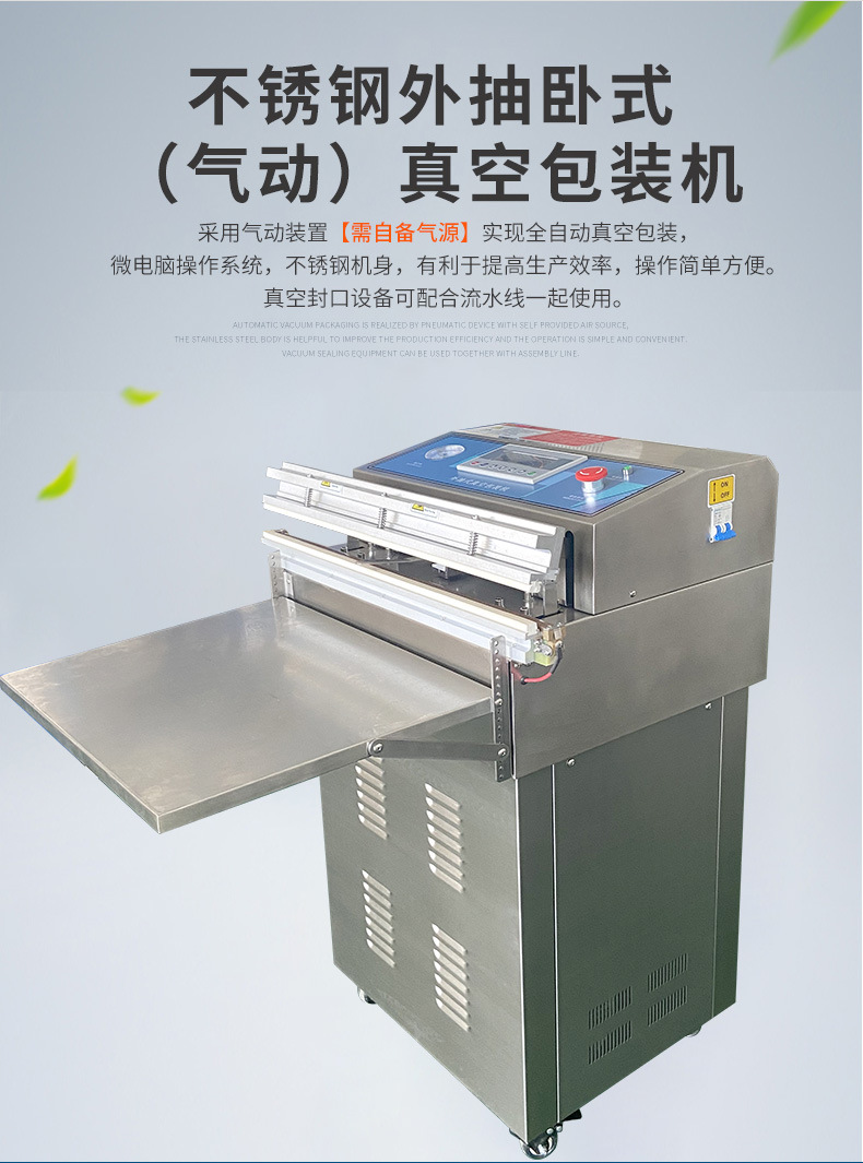 多功能性:除了基本的抽真空和封口功能外,許多氣動外抽真空包裝機還具備充氣功能,可向包裝袋內(nèi)充入氮氣、二氧化碳等惰性氣體,進一步防止物品氧化、變質(zhì),同時還能起到防擠壓、保鮮保味等作用,滿足了不同產(chǎn)品的多樣化包裝需求.