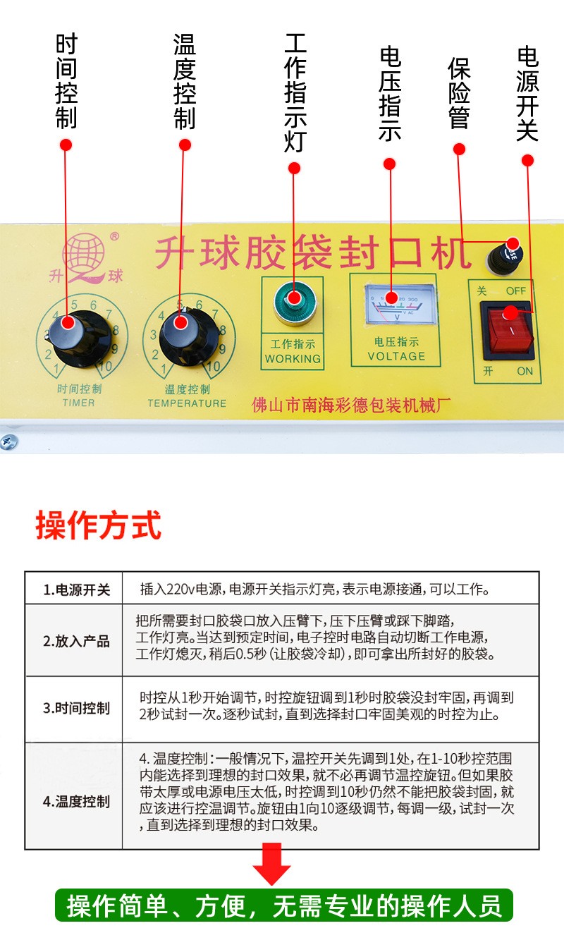 - 熟練的操作人員能夠快速地將袋子放置在封口機的封口位置,準確地踩下腳踏板,實現高效封口。新手可能會在放置袋子時手忙腳亂,或者不能很好地掌握腳踏的力度和時間,導致封口質量不佳,需要返工,進而降低工作效率。例如,一名熟練工人在包裝同規格的小零食袋時,每小時可能完成 500 - 800 個袋子的封口;而新手可能每小時只能完成 200 - 300 個。