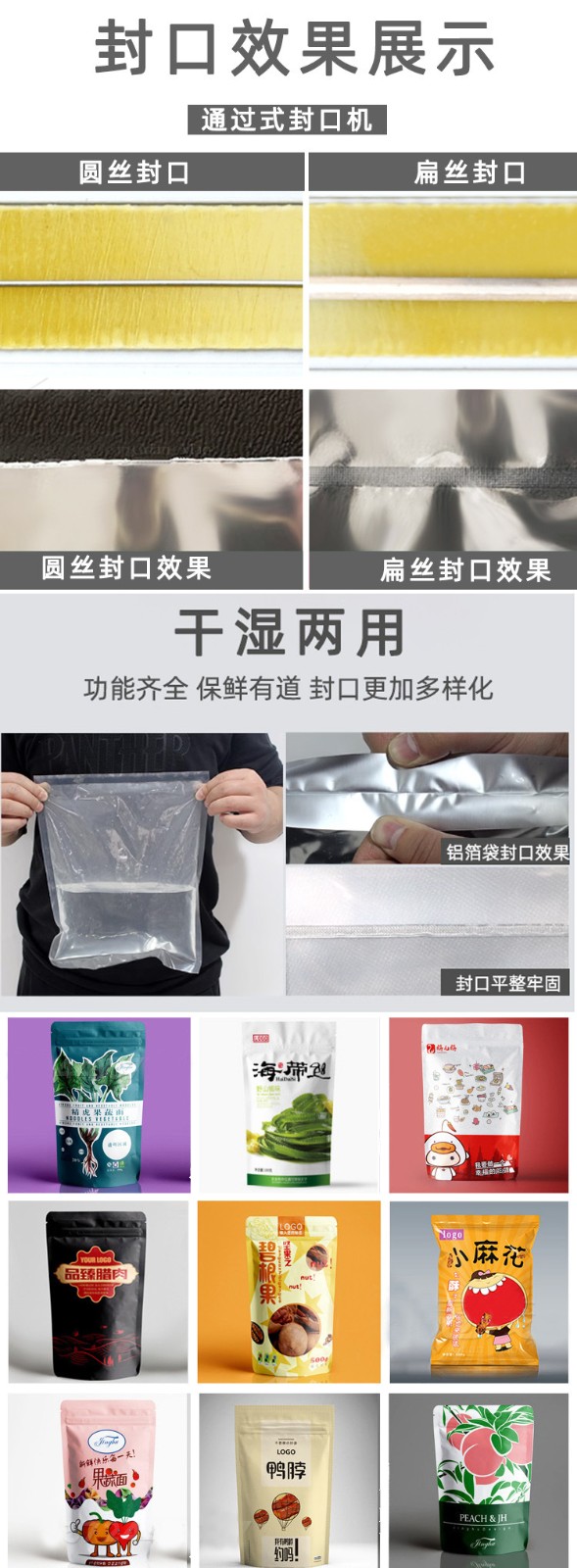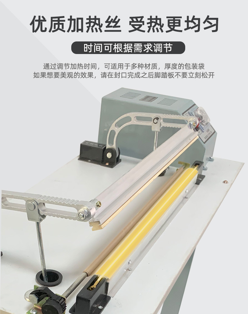 此外,?腳踏封口機還適用于各種塑料薄膜、?復合薄膜及鋁塑薄膜的封合,?廣泛應用于食品、?土特產、?糖果、?茶葉、?醫藥、?五金等行業。?這種設備的操作簡單,?加熱時間可調,?接通電源即可工作,?使得它在商店、?家庭、?工廠等環境中成為方便且經濟的封口解決方案