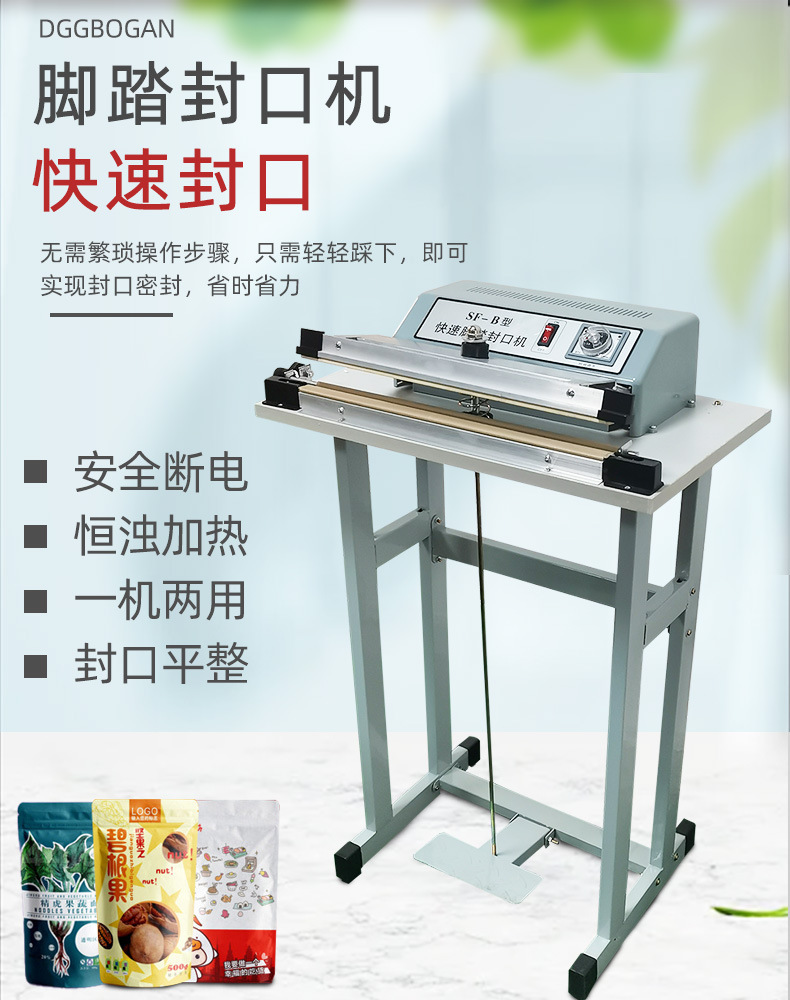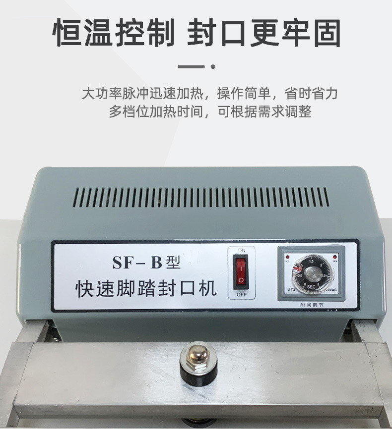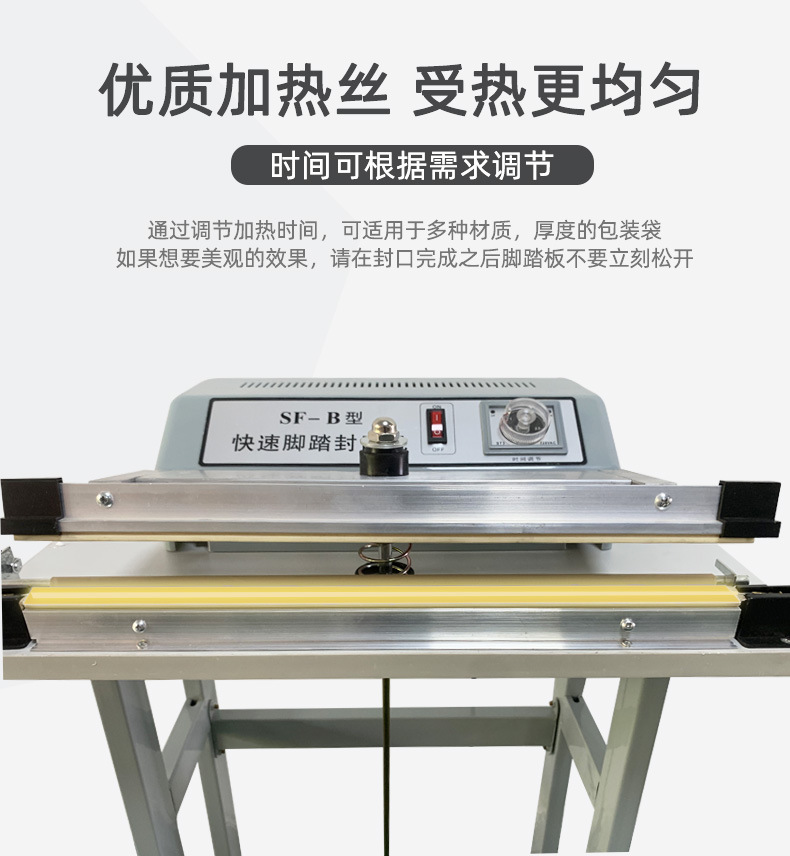 此外,?腳踏封口機還適用于各種塑料薄膜、?復(fù)合薄膜及鋁塑薄膜的封合,?廣泛應(yīng)用于食品、?土特產(chǎn)、?糖果、?茶葉、?醫(yī)藥、?五金等行業(yè)。?這種設(shè)備的操作簡單,?加熱時間可調(diào),?接通電源即可工作,?使得它在商店、?家庭、?工廠等環(huán)境中成為方便且經(jīng)濟的封口解決方案