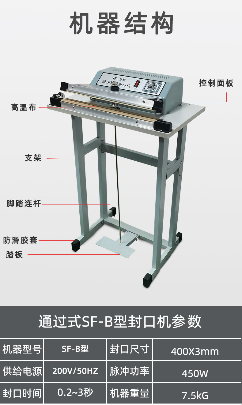 腳踏封口機是一種理想的封口設(shè)備,?適用于各種塑料袋薄膜的封口及制袋。?它特別適用于醫(yī)藥、?農(nóng)藥、?食品、?日化、?潤滑油等行業(yè)的鋁箔袋、?塑料袋、?復(fù)合袋的封口。?這種設(shè)備利用電氣脈沖技術(shù),?能夠顯著縮短封口時間,?從原來的2-4秒縮短至0.2秒,?具有投資少、?效益高、?封口長度長、?操作簡單等特點。?因此,?腳踏封口機被廣泛應(yīng)用于食品、?醫(yī)藥、?土特產(chǎn)、?電器軟件、?工廠、?商店、?服務(wù)行業(yè)等領(lǐng)域,?成為這些行業(yè)中不可或缺的封口設(shè)備