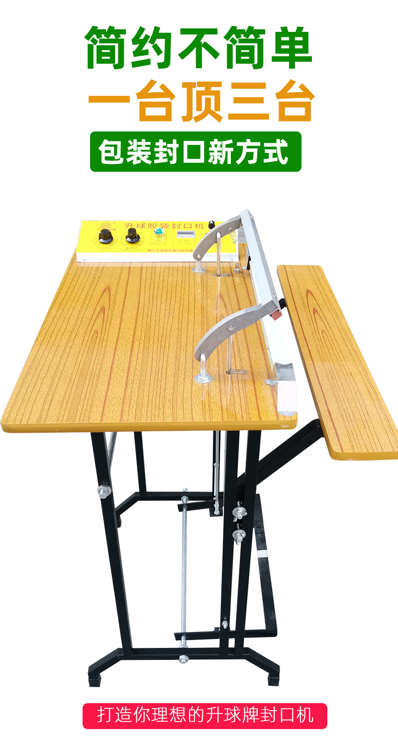 升球牌是根據國內外先進的機型基礎上,重新設計制造而成,適用于所有塑料袋薄膜封口及制袋,是食品廠,化妝品廠,藥廠等單位的理想封口設備。適用范圍 適用于醫藥,農藥,食品,日化,潤滑油等行業的鋁箔袋,塑料袋,復合袋理想封口機械