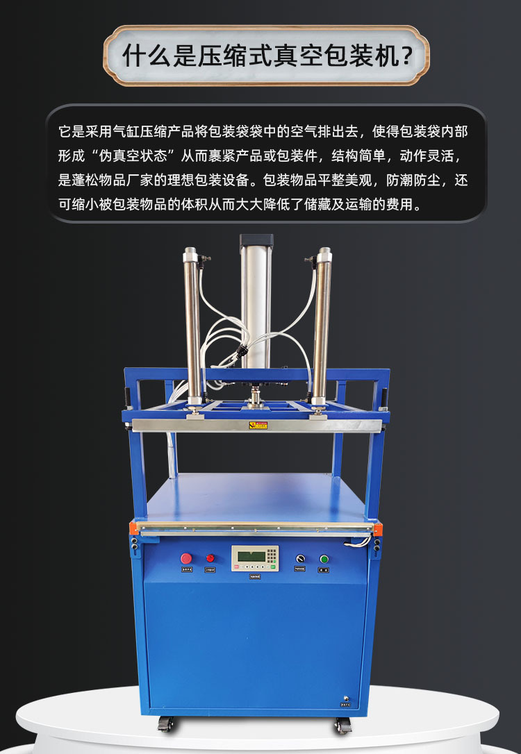 壓縮包裝機適用于棉布料、坐墊、枕頭棉被、羽絨服等壓縮包裝以減少體積介紹物流成本