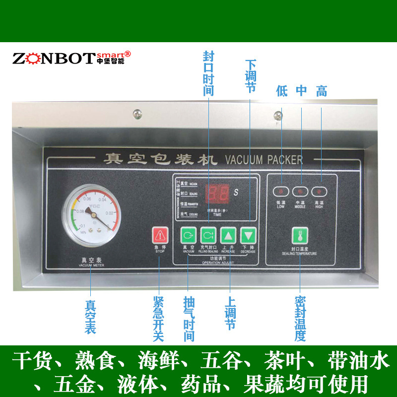 外抽真空包裝機(jī)通過抽氣嘴放入被包裝物的包裝袋內(nèi),?抽空空氣后完成封口,?實現(xiàn)了抽真空包裝的全自動化。?這種機(jī)器采用了國際先進(jìn)的控制技術(shù),?具有自動定型包裝袋、?抽真空等功能,?從而使產(chǎn)品具有外觀美觀、?保鮮、?防變質(zhì)和延長儲存時間等特點(diǎn)。?外抽式真空機(jī)特別適用于食品、?藥物、?土特產(chǎn)、?電子元件、?服裝等進(jìn)行真空、?封口包裝,?不受包裝物大小及體積的限制,?任意進(jìn)行真空包裝。?其適用范圍廣泛,?經(jīng)濟(jì)效益高,?使用方便,?能夠有效地防止物料的迅速氧化和抑制好氧性細(xì)菌的繁殖所引起的物料腐敗和變質(zhì)。?