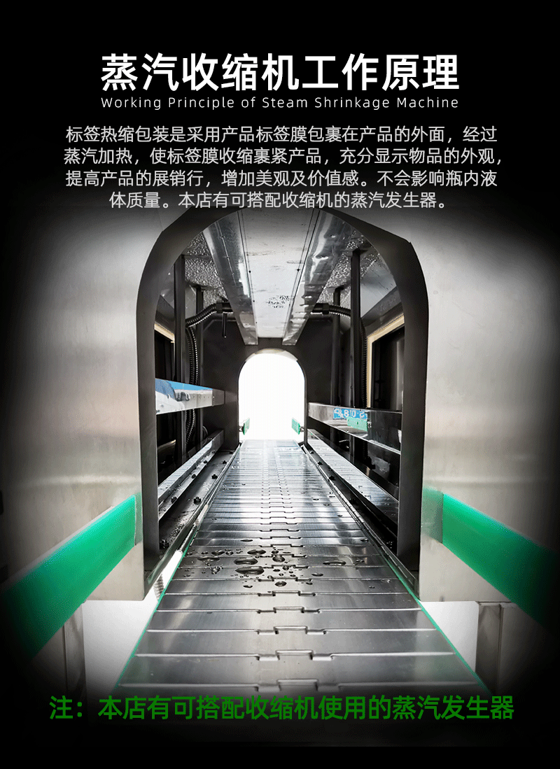 蒸汽收縮機因其高效、?穩定的特點,?被廣泛應用于多個行業。?在醫藥行業中,?蒸汽收縮機用于包裝藥品,?確保藥品的安全性和衛生性。?對于日用品,?蒸汽收縮機能夠提供高質量的包裝,?保護產品免受外界環境的影響。?食品飲料行業也廣泛使用蒸汽收縮機,?以確保食品的安全密封和保鮮。?此外,?家用化學品行業也依賴蒸汽收縮機來包裝各種家用化學品,?保證產品的質量和安全性。?