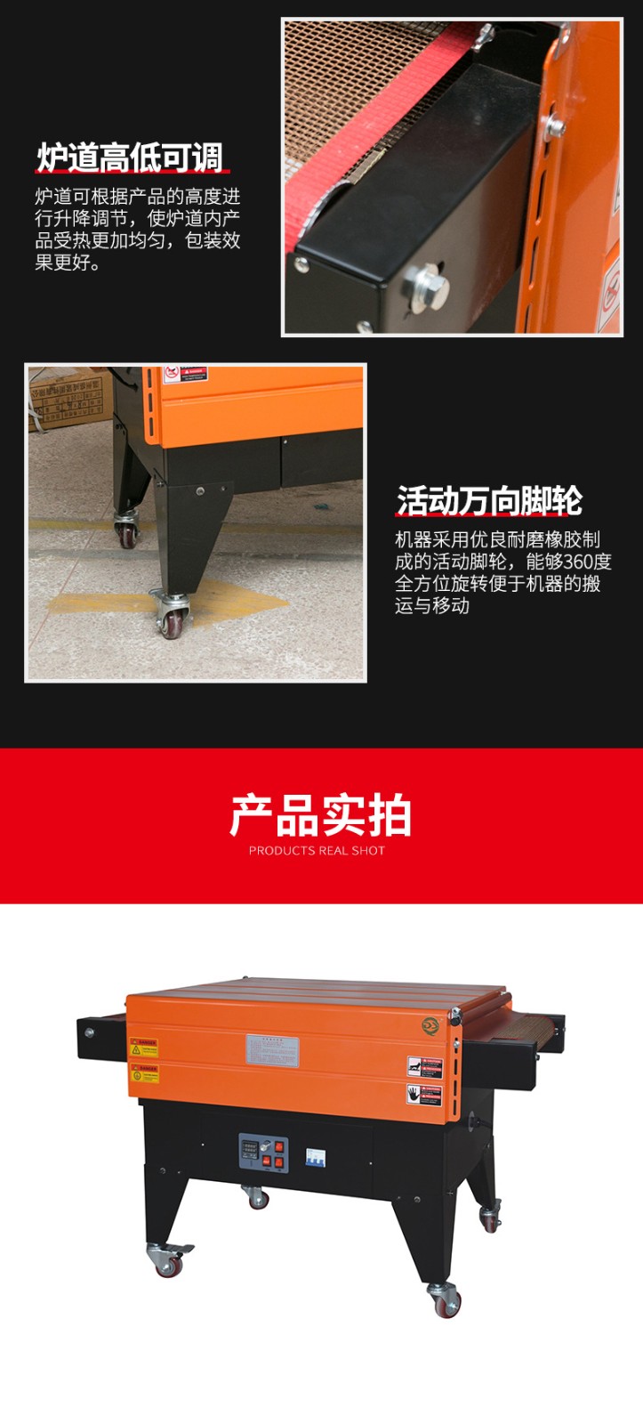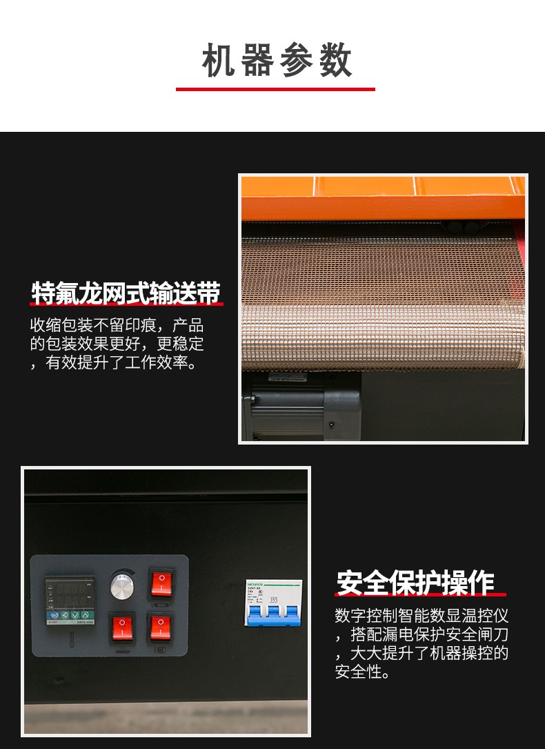 • 包括輸送帶和驅動電機等部分。輸送帶用于將產品平穩地輸送通過熱空氣噴射區域,其速度可以調節。這樣可以根據不同的包裝速度要求和產品尺寸來控制產品在機器中的停留時間。例如,對于較小的產品,如糖果,可以加快輸送帶速度,提高包裝效率;而對于較大的產品,如家電產品的配件,輸送帶速度可以適當減慢,以保證薄膜有足夠的時間進行收縮。