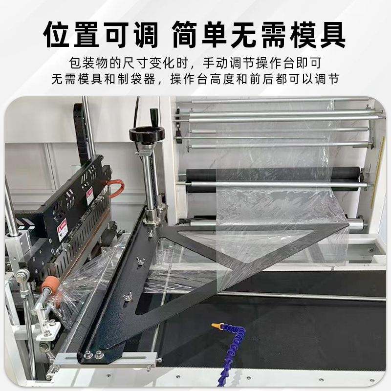 存放熱收縮膜卷(如 POF、PVC、PE 膜),配備自動(dòng)張力控制器,確保膜材勻速、平穩(wěn)輸送,避免膜材褶皺或斷裂(部分機(jī)型支持 “雙膜卷切換”,減少換膜停機(jī)時(shí)間)。 - 垂直封切機(jī)構(gòu):