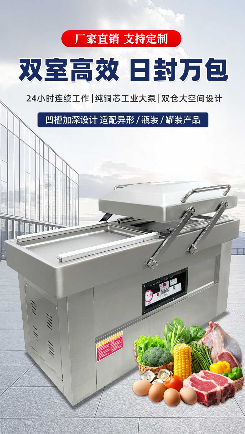 雙室真空機商用大型食品包裝機 全自動雙倉抽真空熟食打包封口機
