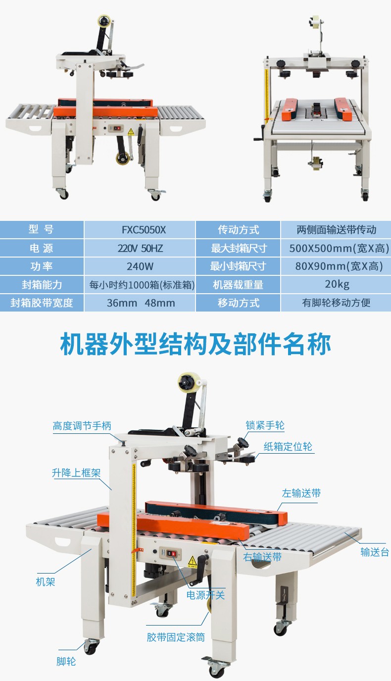 ZB-4050XF封箱機 彩色膠帶自動封箱打包器 自動封箱機