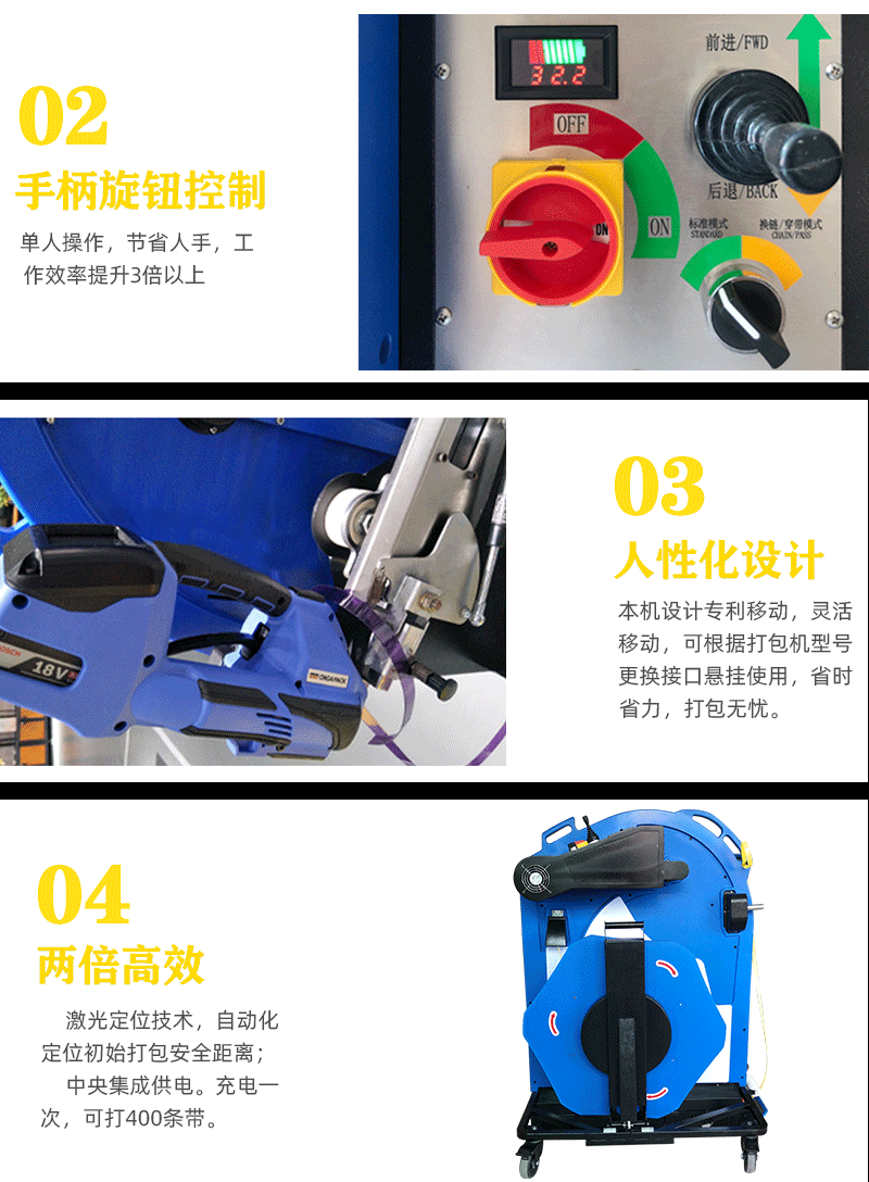 該打包機(jī)具有自動(dòng)上膠、自動(dòng)切帶、自動(dòng)封口等功能,操作簡(jiǎn)單,維護(hù)方便。同時(shí),它還具備故障自診斷和自動(dòng)保護(hù)功能,確保在使用過程中安全可靠。